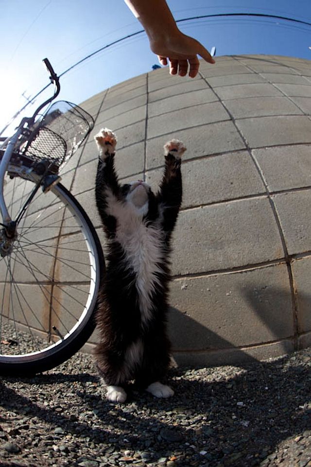 Το ιαπωνικό νησί είναι γεμάτο από γάτες που ζουν ευτυχισμένες κοντά στους ντόπιους ψαράδες. Το φαγητό τους είναι εξασφαλισμένο, όπως και η ευζωΐα τους, αφού οι κάτοικοι τις θεωρούν γούρικες. Οι γάτες είναι ουσιαστικά αδέσποτες, αλλά καθόλου άστεγες. Είναι ελεύθερες να πηγαίνουν όπου θέλουν και απολύτως ευπρόσδεκτες στα σπίτια των στις βάρκες των ψαράδων.Ο φωτογράφος Φουμπιράι, πέρασε πέντε χρόνια στο νησί, φωτογραφίζοντας τις γάτες και δημιουργώντας ένα απολαυστικό άλμπουμ.